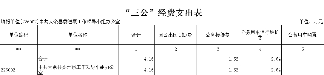 (五)“三公經(jīng)費”:納入財政預(yù)決算管理的“三公”經(jīng)費,是指部門用財政撥款安排的因公出國(境)費、公務(wù)用車購置及運行費和公務(wù)接待費。其中,因公出國(境)費反映單位公務(wù)出國(境)的國際旅費、國外城市間交通費、住宿費、伙食費、培訓(xùn)費、公雜費等支出;公務(wù)用車購置及運行費反映單位公務(wù)用車車輛購置支出(含車輛購置稅)及租用費、燃料費、維修費、過路過橋費、保險費、安全獎勵費用等支出;公務(wù)接待費反映單位按規(guī)定開支的各類公務(wù)接待(含外賓接待)支出。
