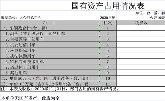 納入本套部門決算匯編范圍的單位共1個,包括:大余縣總工會本級。