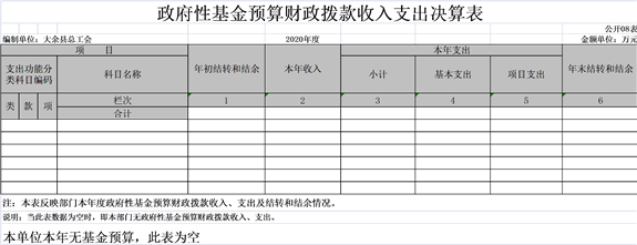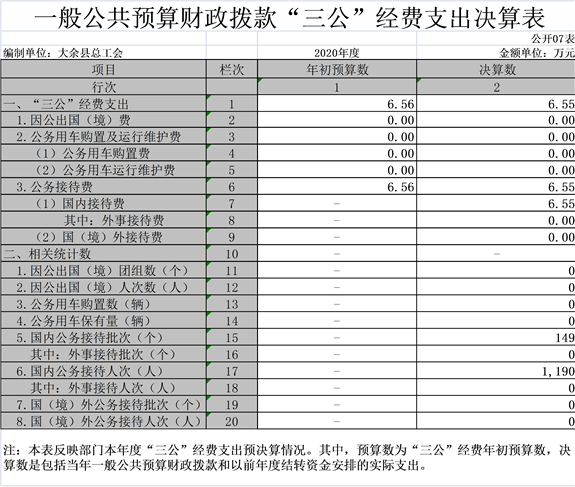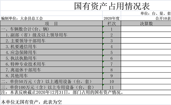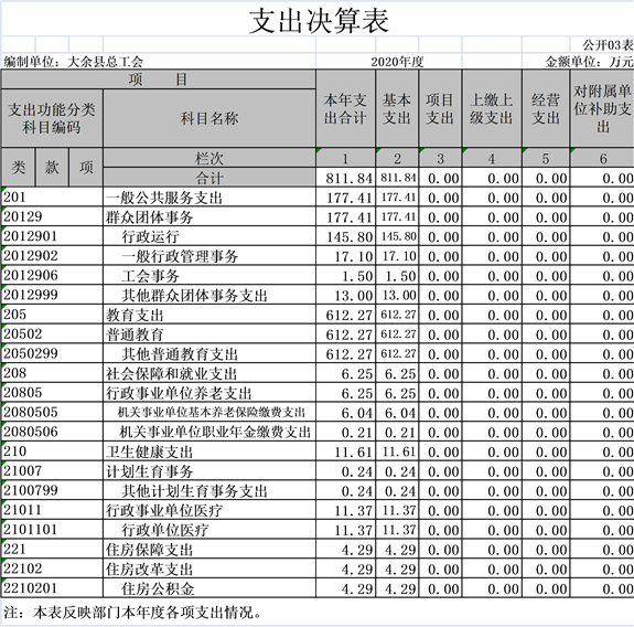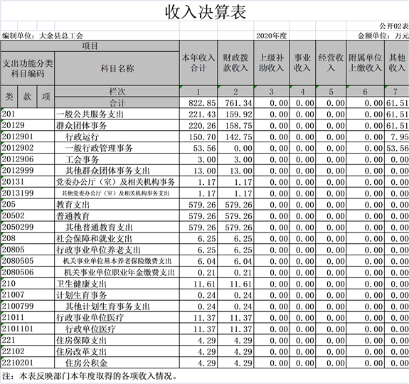 納入本套單位決算匯編范圍的單位共1個,包括:大余縣總工會本級。