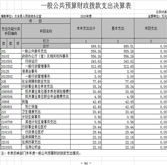 (一)一般公共服務支出(類)政府辦公廳(室)及相關機構事務(款)行政運行(項):反映行政單位(包括實行公務員管理的事業單位)的基本支出。