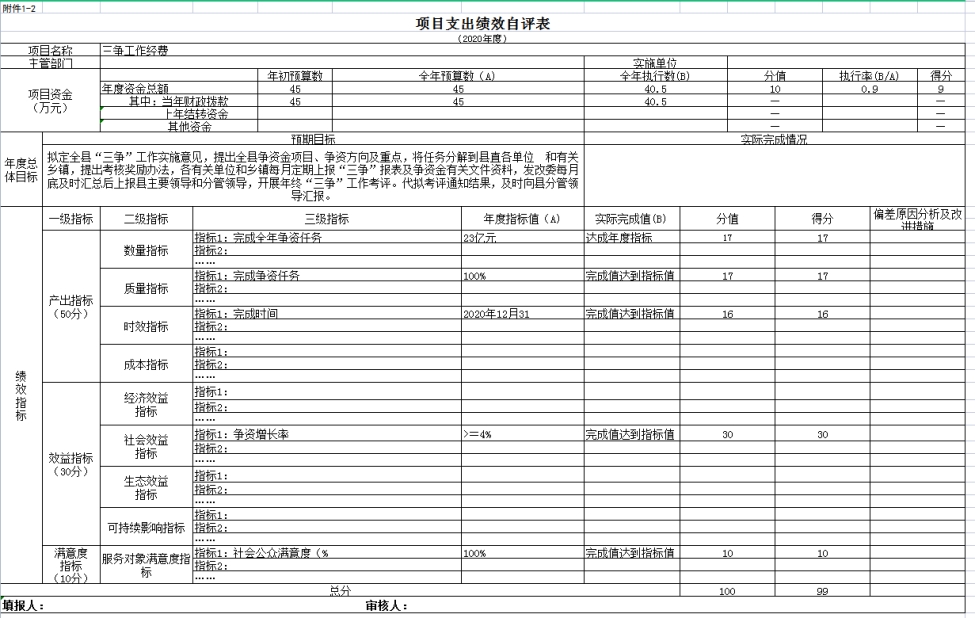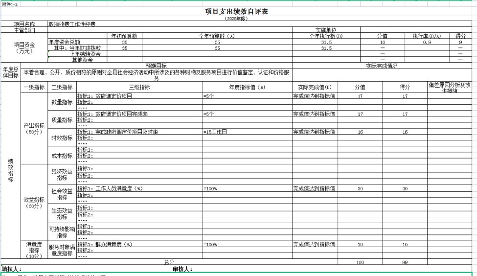 根據部門整體支出績效評價指標體系,2020年度評價得分為98分。