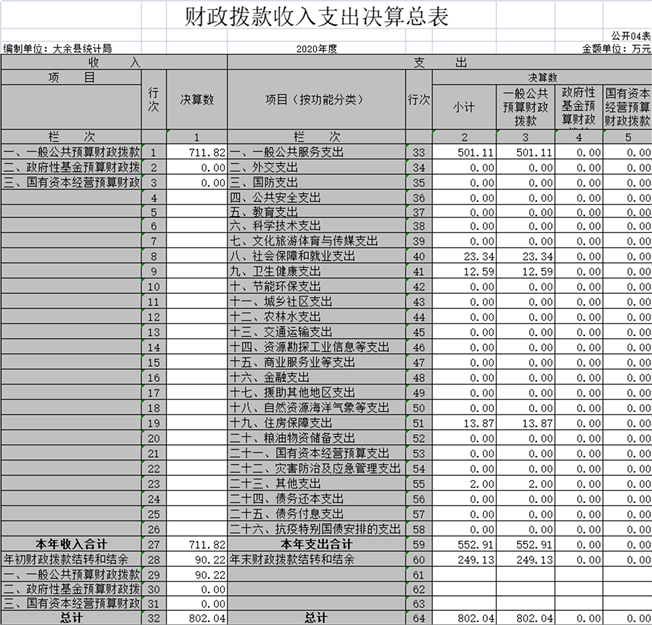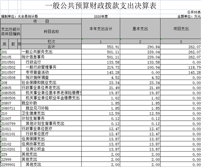 納入本套部門決算匯編范圍的單位共1個,包括:大余縣統計局本級、縣社情民意調查中心、統計執法大隊。