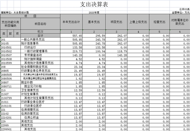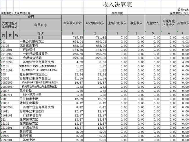 納入本套單位決算匯編范圍的單位共1個,包括:大余縣統(tǒng)計局本級、縣社情民意調查中心、統(tǒng)計執(zhí)法大隊。