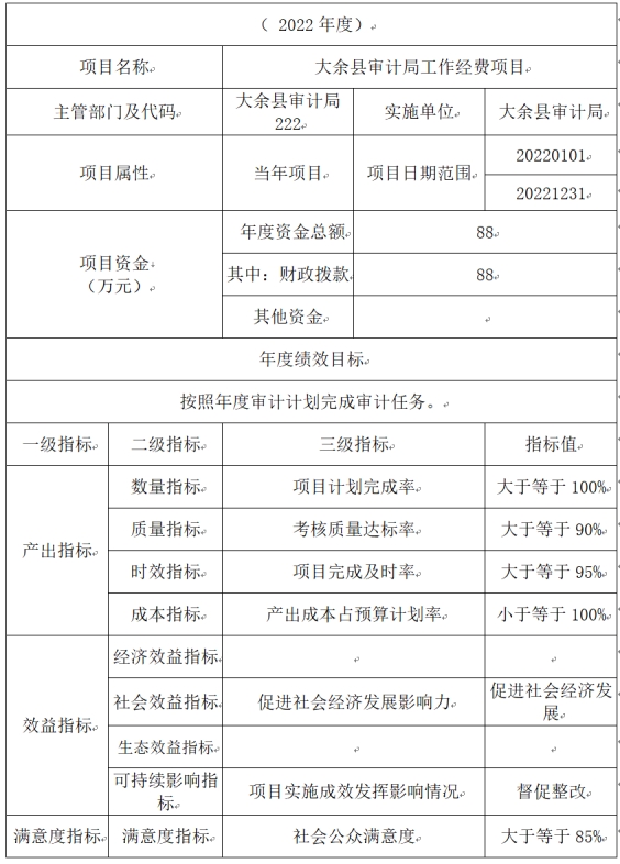 2022年大余縣審計局本級財政撥款支出預算總額為財政撥款支出預算總額507.88萬元,較上年預算安排減少13.09萬元;