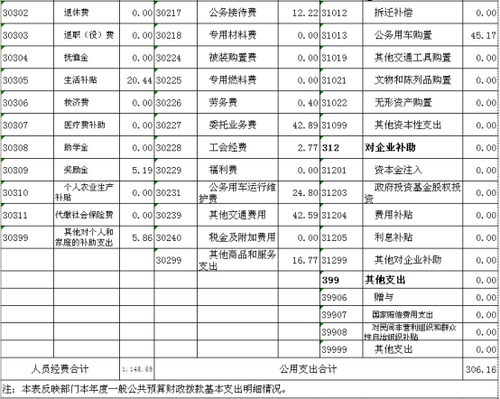 (一)一般公共服務支出:反映行政單位(包括實行公務員管理的事業單位)的基本支出。