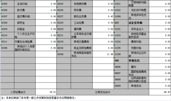 (五)“三公”經(jīng)費(fèi):納入財(cái)政預(yù)決算管理的“三公”經(jīng)費(fèi),是指部門(mén)用財(cái)政撥款安排的因公出國(guó)(境)費(fèi)、公務(wù)用車(chē)購(gòu)置及運(yùn)行費(fèi)和公務(wù)接待費(fèi)。其中,因公出國(guó)(境)費(fèi)反映單位公務(wù)出國(guó)(境)的國(guó)際旅費(fèi)、國(guó)外城市間交通費(fèi)、住宿費(fèi)、伙食費(fèi)、培訓(xùn)費(fèi)、公雜費(fèi)等支出;公務(wù)用車(chē)購(gòu)置及運(yùn)行費(fèi)反映單位公務(wù)用車(chē)車(chē)輛購(gòu)置支出(含車(chē)輛購(gòu)置稅)及租用費(fèi)、燃料費(fèi)、維修費(fèi)、過(guò)路過(guò)橋費(fèi)、保險(xiǎn)費(fèi)、安全獎(jiǎng)勵(lì)費(fèi)用等支出;公務(wù)接待費(fèi)反映單位按規(guī)定開(kāi)支的各類(lèi)公務(wù)接待支出。