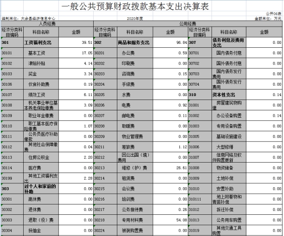 第二部分 2020年度部門(mén)決算表
