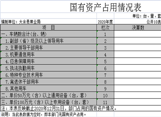 截止2020年12月31日,本單位國有資產占用情況見公開10表《國有資產占用情況表》。本部門共有車輛0輛,其中,副部(省)級及以上領導用車0輛、主要領導干部用車0輛、機要通信用車0輛、應急保障用車0輛、執法執勤用車0輛、特種專業技術用車0輛、其他用車0輛,單位價值50萬元以上通用設備0臺(套);單位價值100萬元以上專用設備0臺(套)。
