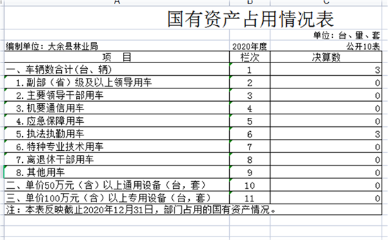 截止2020年12月31日,本部門本部門共有車輛 3 輛,其中:機(jī)要通信用車0輛,執(zhí)法執(zhí)勤用車 3 輛、其他用車 0