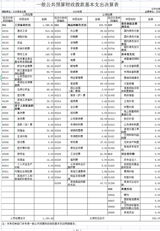 六、一般公共預(yù)算財(cái)政撥款基本支出決算表