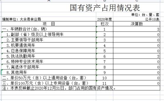 截止2020年12月31日,本單位國有資產占用情況見公開10表《國有資產占用情況表》。本單位共有車輛 3 輛,其中:機要通信用車0輛,執(zhí)法執(zhí)勤用車 3 輛、其他用車 0