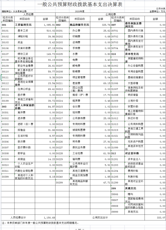 (一)一般公共服務支出年初預算數為 0 萬元,決算數為 6.6 萬元,完成年初預算的 100 %,主要原因是:林業(yè)有害防治理賠費用。