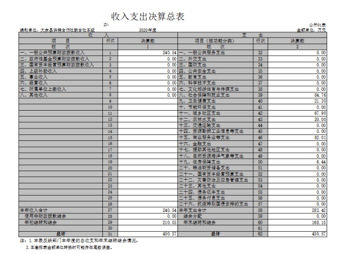 本部門2020年度收入總計(jì)450.57萬(wàn)元,其中年初結(jié)轉(zhuǎn)和結(jié)余210.03萬(wàn)元,較2019年增加178.1萬(wàn)元,增長(zhǎng)557.78%;本年收入合計(jì)240.54萬(wàn)元,較2019年減少227.29萬(wàn)元,下降48.58%,主要原因是:上年度有鄉(xiāng)鎮(zhèn)基層社的重建資金。