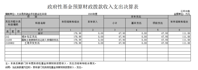 (三)城鄉(xiāng)社區(qū)支出年初預(yù)算數(shù)為0萬(wàn)元,決算數(shù)為67.9萬(wàn)元,主要原因是上年度結(jié)轉(zhuǎn)的鄉(xiāng)鎮(zhèn)基層社重建資金本年度支付數(shù)。