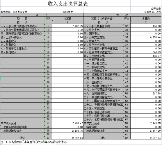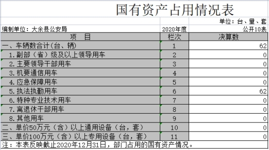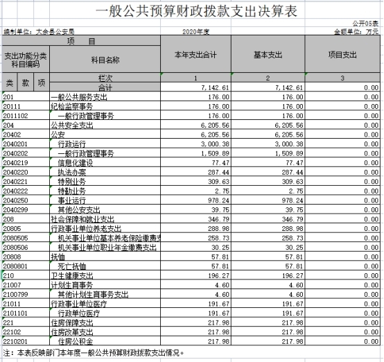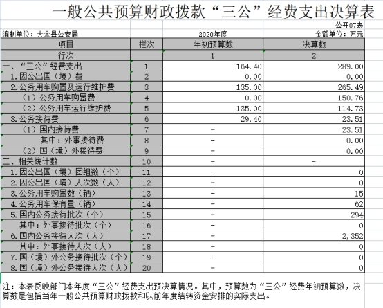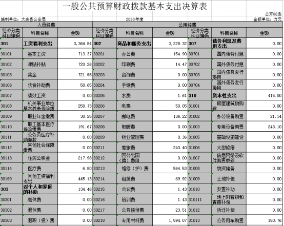 大余縣公安局2020年度決算
