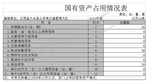 附件1江西省大余縣公安局交通管理大隊本級2020年決算公開表