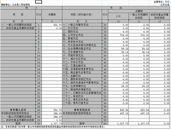 納入本套部門決算匯編范圍的單位共1個,即大余縣人民檢察院。