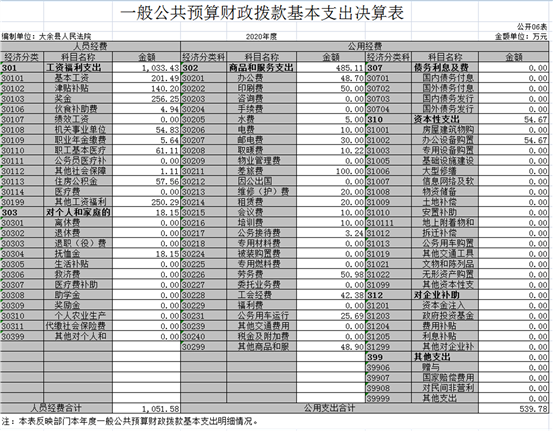 六、一般公共預(yù)算財(cái)政撥款基本支出決算表