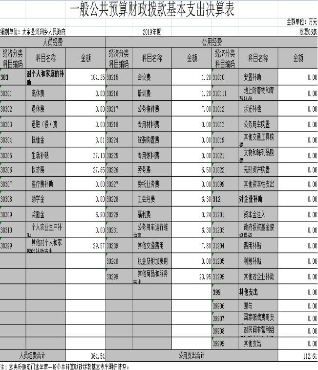 六、一般公共預(yù)算財(cái)政撥款基本支出決算表