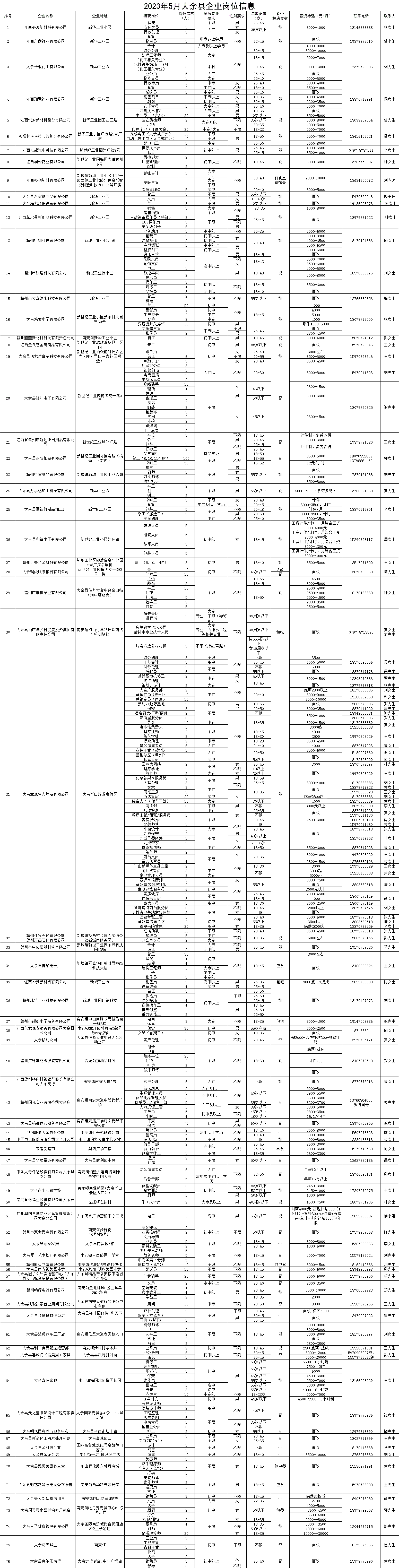 【招聘信息】2023年5月大余縣企業(yè)崗位信息