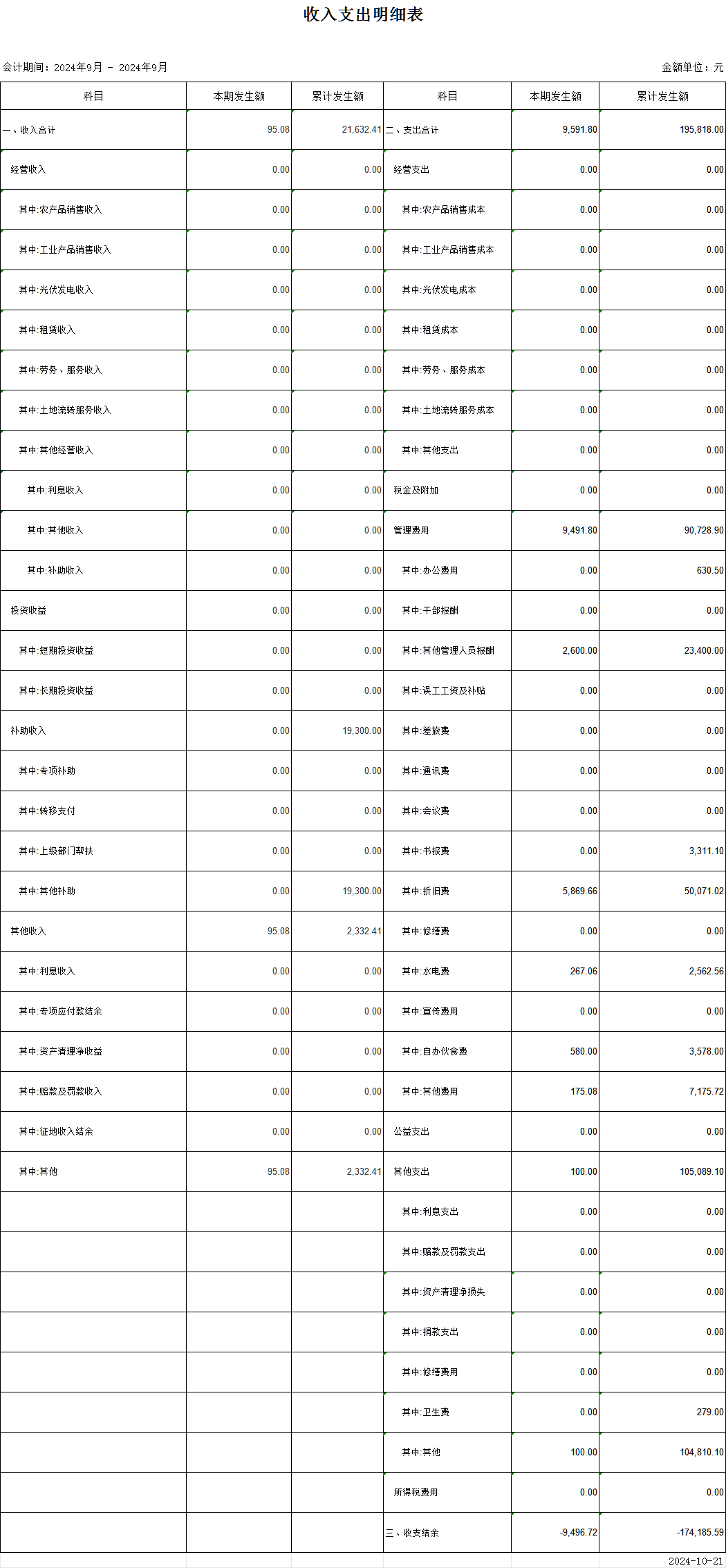 蓮塘村2024年9月財務收支情況公示