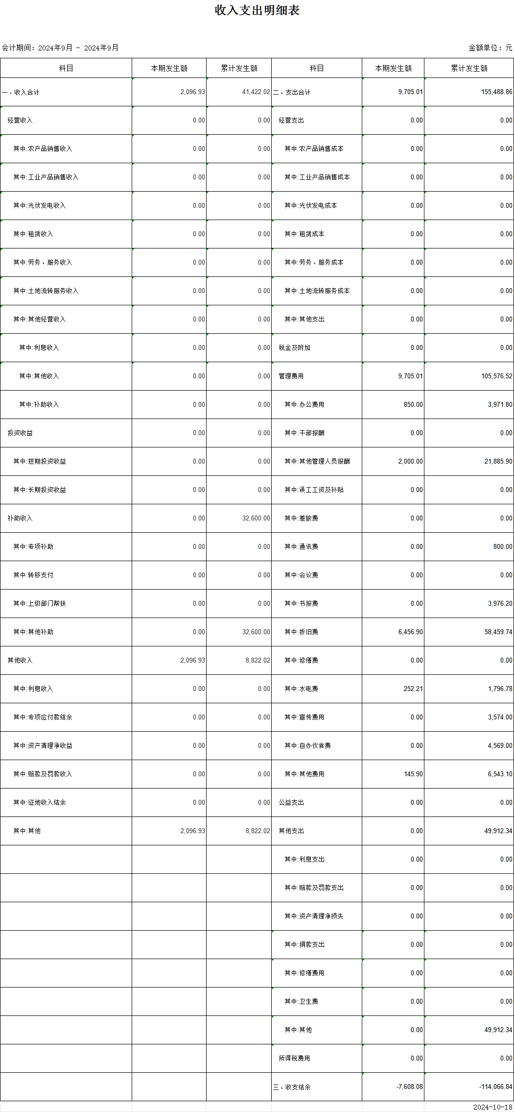 窯孜前村2024年9月財務收支情況公示