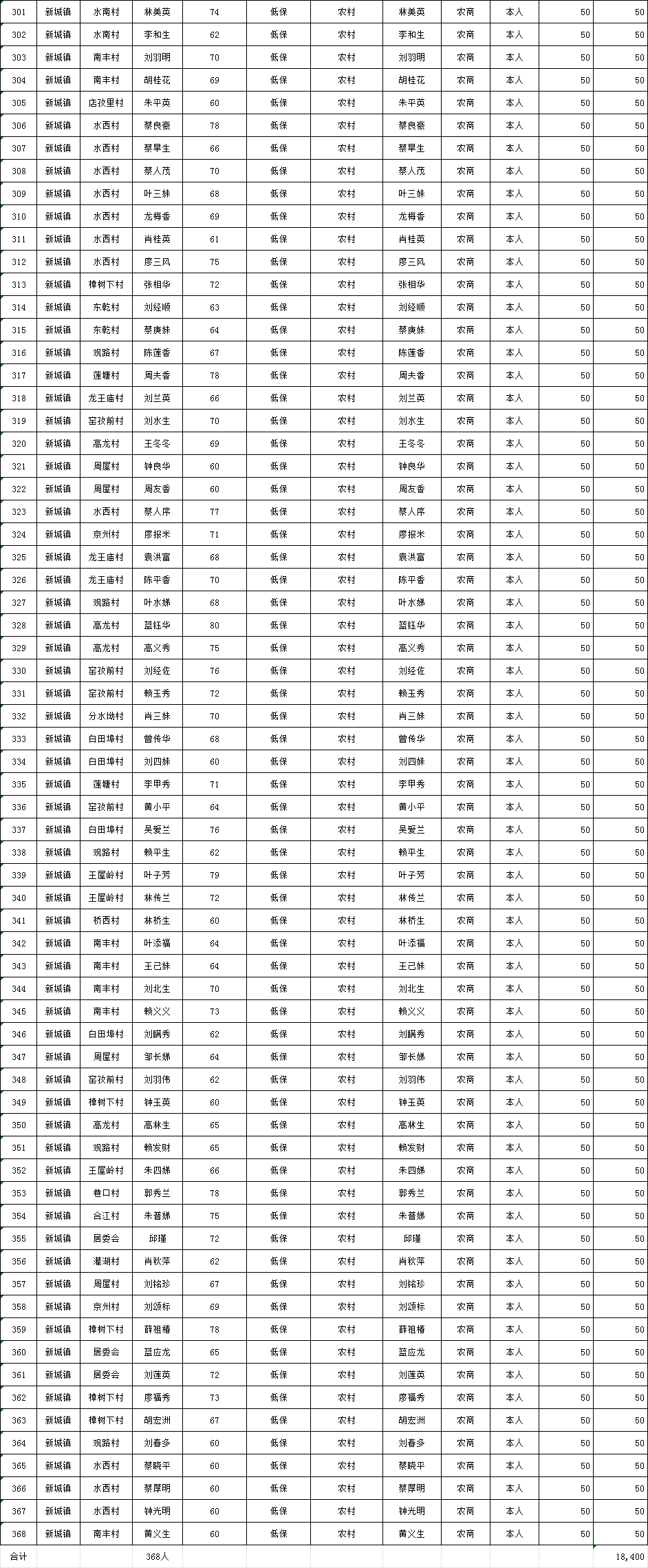 2024年5月新城鎮60周歲以上經濟困難老年人生活補貼對象發放公示