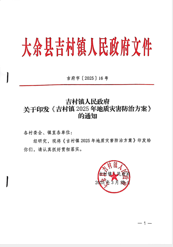 關于印發《吉村鎮2025年地質災害防治方案》的通知(2)