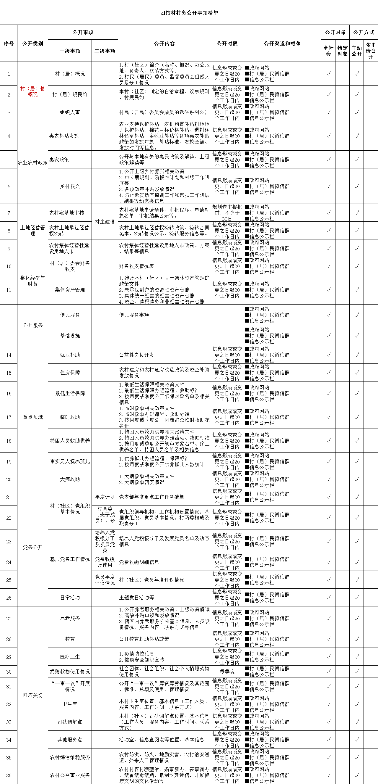 團(tuán)結(jié)村村務(wù)公開事項(xiàng)清單