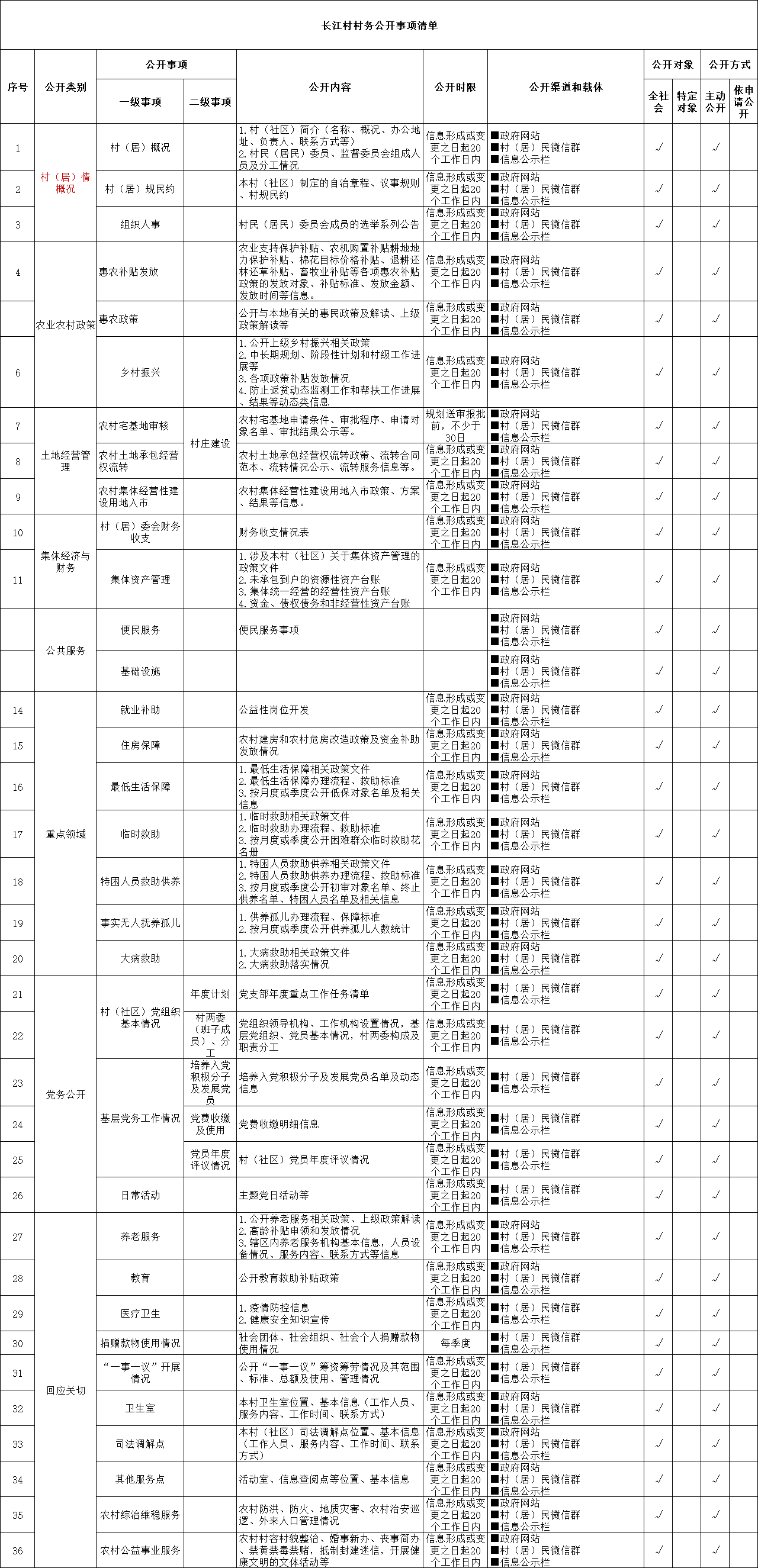 長(zhǎng)江村村務(wù)公開事項(xiàng)清單