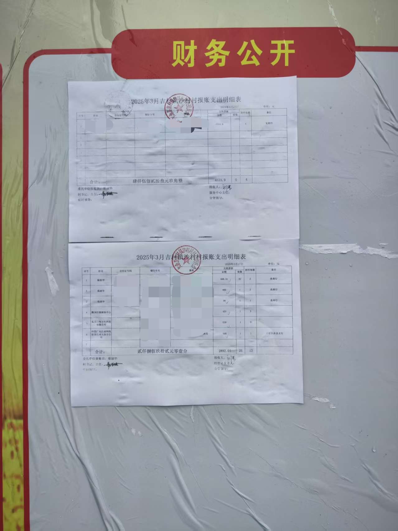 沙村村2025年3月財務公示