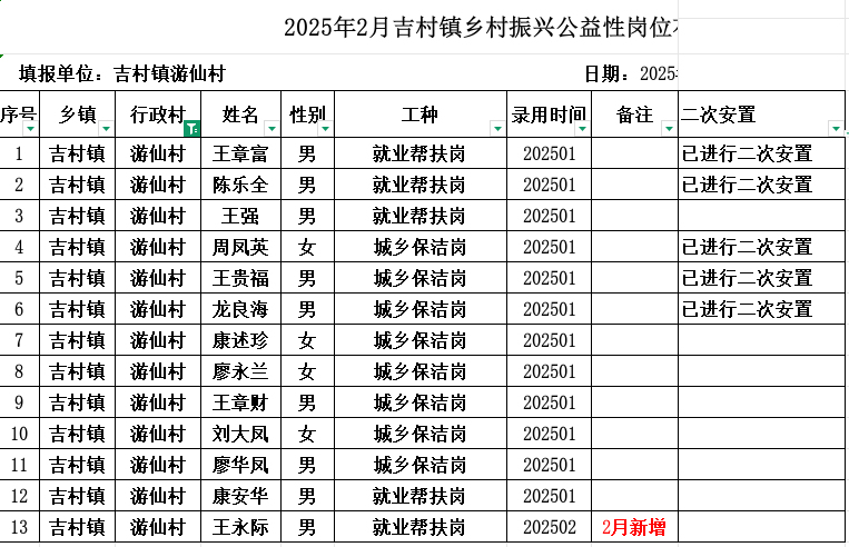游仙村2025年2月鄉村振興公益性崗位花名冊圖片