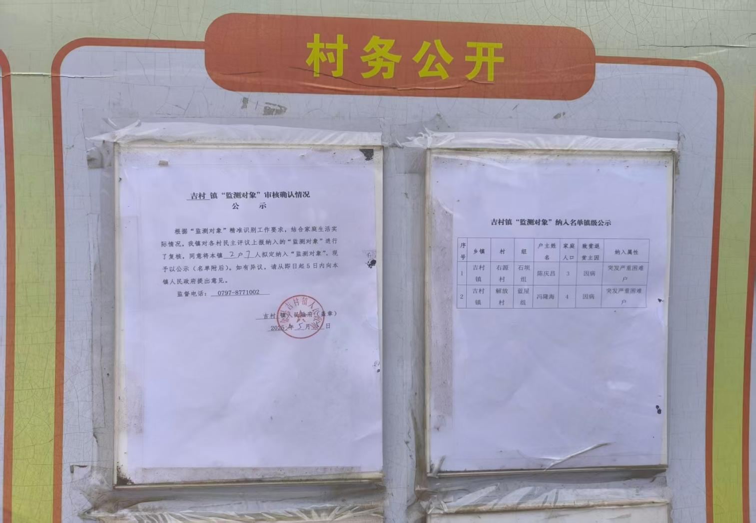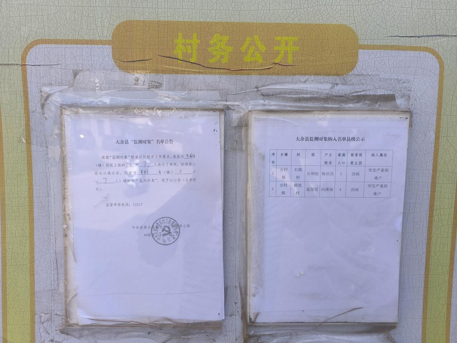 解放村2025年5月新增監測對象公示圖片