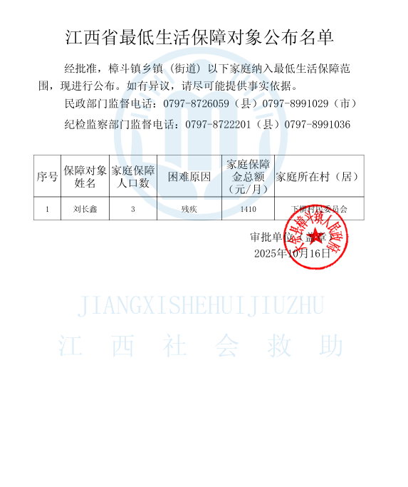 2025年5月下橫村新增低保名單公示