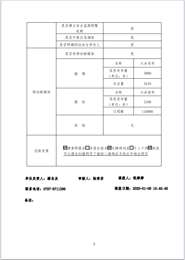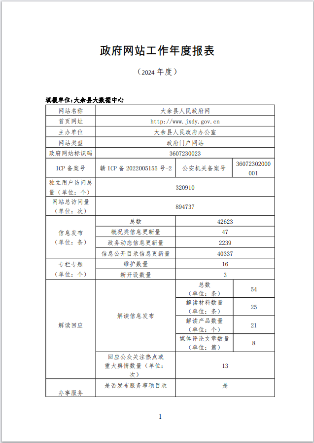 大余縣政府網站2024年工作年度報表