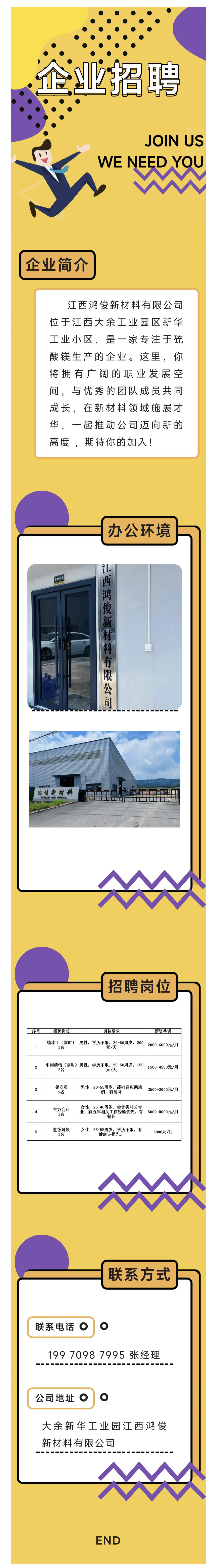 大余縣招聘資訊—江西鴻俊新材料有限公司
