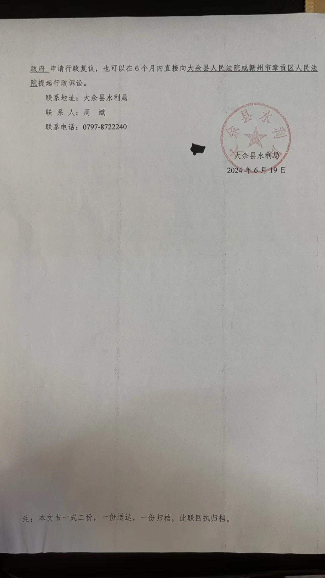 大余縣水利局不予行政處罰決定書 余水不罰訣【2024】3號