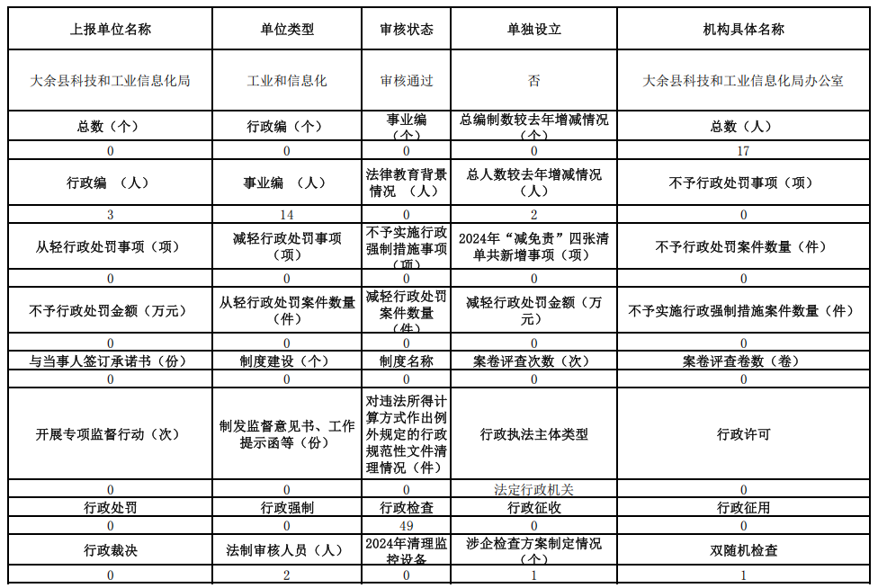 大余縣科工局2024年行政執法數據年報